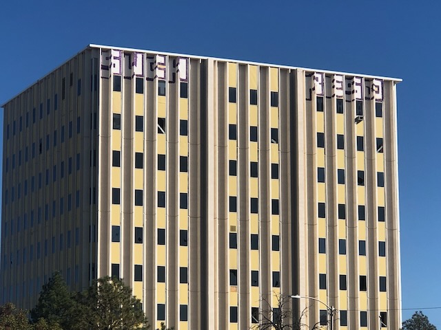 Props to the artists who tagged the vacant Two Park Central Tower at Central and San Mateo in Albuquerque. I like to think Theodor Adorno and Max Horkheimer would approve.